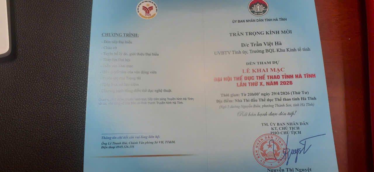 Giấy mời tham, dự lễ khai trương mùa du lịch biển năm 2026